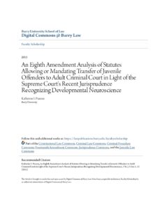 An Eighth Amendment Analysis of Statutes Allowing or Mandating Transfer of Juvenile Offenders to Adult Criminal Court in Light of the Supreme Court’s Recent Jurisprudence Recognizing Developmental Neuroscience