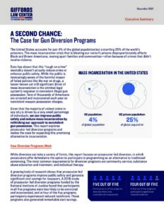 This executive summary of from the Giffords Law Center provides an overview of diversion programs for nonviolent gun possession focusing on the Pathways to New Beginnings program in Minneapolis. Additionally, the resource includes recidivism rates for people who participated in the program and offers recommendations to prosecutors and state legislators on these types of diversion programs.