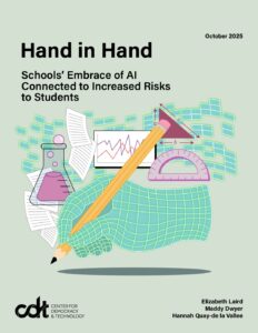 The Center for Democracy & Technology released a report on the current status of AI use in schools and emerging risks. This report covers the interaction of AI with the classroom, students, IEPs, literacy, deepfakes, student activity monitoring, and student privacy.
