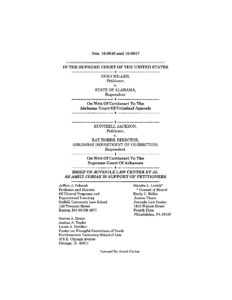 This amici brief prepared by the Juvenile Law Center et al. highlights the particular characteristics of adolescent development and youth that make juvenile life without parole sentences unconstitutional and in violation of the 8th Amendment to the U.S. Constitution. The brief addresses youth’s culpability, potential for change, and risk taking behavior compared to adults as well as their particular vulnerability to wrongful conviction.
