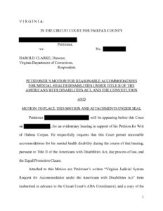 Sample Motion for Reasonable Accommodations for Mental Health Disabilities Access This Resource File Type: pdf Categories: Motion, Resource Library Tags: ADA, Disabilities, Due Process, Equal Protection, Health and Mental Health, Trauma