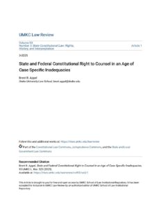 State and Federal Constitutional Right to Counsel in an Age of Case Specific Inadequacies