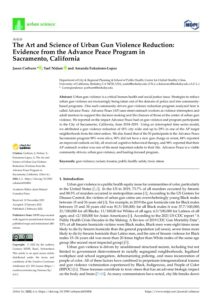 “Urban gun violence is a critical human health and social justice issue. Strategies to reduce urban gun violence are increasingly being taken out of the domain of police and into community-based programs. One such community-driven gun violence reduction program analyzed here is called Advance Peace. Advance Peace (AP) uses street outreach workers as violence interrupters and adult mentors to support the decision making and life chances of those at the center of urban gun violence. We reported on the impact Advance Peace had on gun violence and program participants in the City of Sacramento, California, from 2018–2019. Using an interrupted time series model, we attributed a gun violence reduction of 18% city wide and up to 29% in one of the AP target neighborhoods from the intervention. We also found that of the 50 participants in the Advance Peace Sacramento program 98% were alive, 90% did not have a new gun charge or arrest, 84% reported an improved outlook on life, all received cognitive behavioral therapy, and 98% reported that their AP outreach worker was one of the most important adults in their life. Advance Peace is a viable community-driven, urban gun violence, and healing-focused program.”